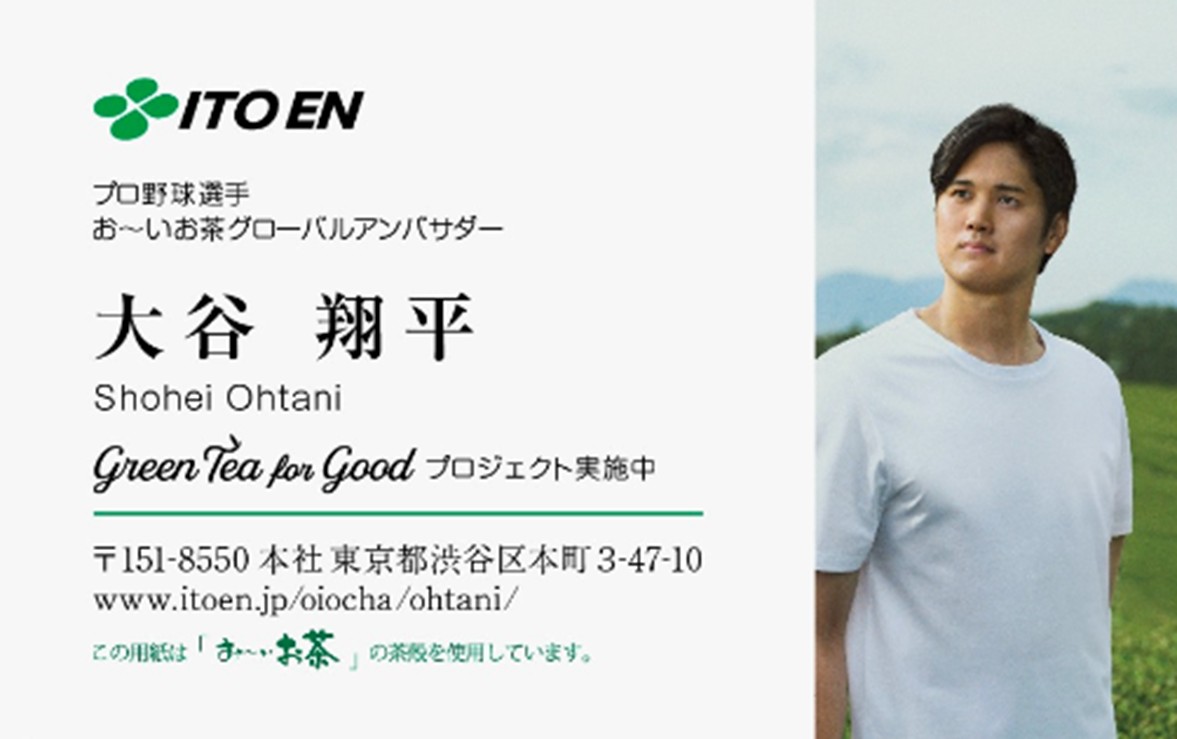 On the occasion of Otani’s appointment as a global ambassador, a limited number of “Green Tea for Good” Otani promotional cards based on a business card-style design will be distributed.